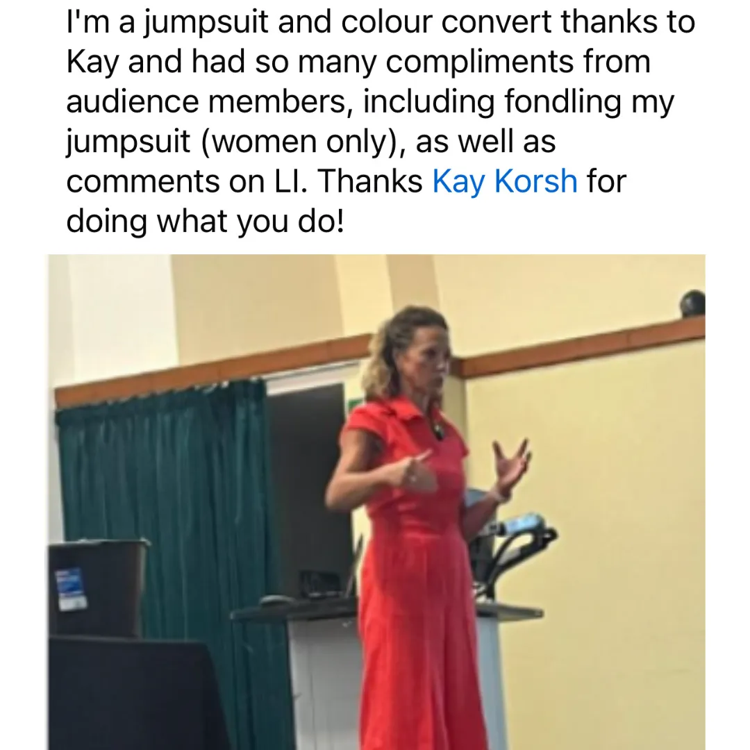 I’m Kay Korsh, fashion stylist turned style strategist for speakers. After 20 years dressing A-list actors like Elizabeth Debicki, Riz Ahmed, Lily James and Ben Whishaw, I know how much a well-chosen outfit can support (or distract from) a powerful message.