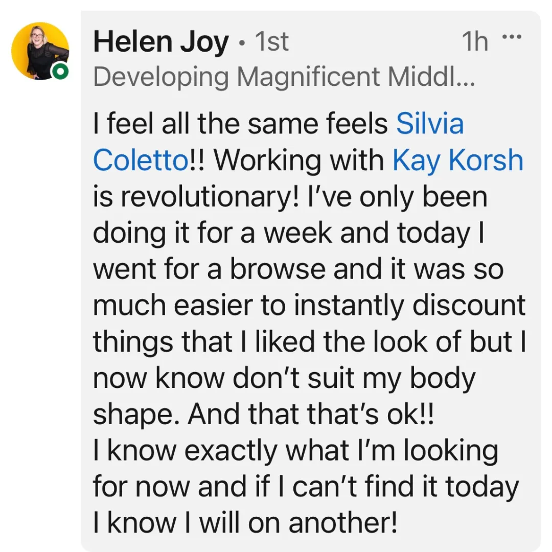 “Kay has given me the confidence to know that I look like I should be charging my fee - and confident to now ask for that fee!"