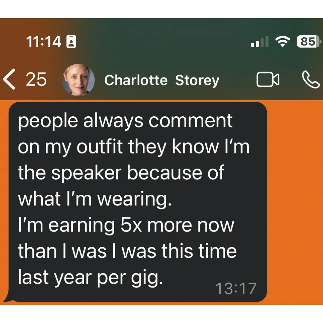 “People now know I’m the speaker due to what I’m wearing. I’m earning 5x more per gig than I was last year”