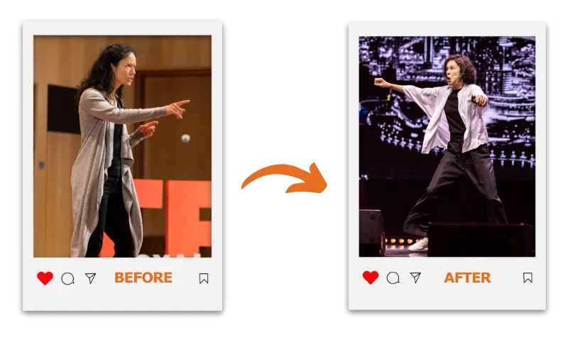 We've helped women go from hiding behind “safe” outfits to commanding stages with confidence. You’ll see it in our before-and-after gallery — where speakers have gone from “meh” to magnetic, simply by aligning their message with their wardrobe. And these changes aren’t just visual — they’ve led to more speaking gigs, higher fees, and deeper audience connection.